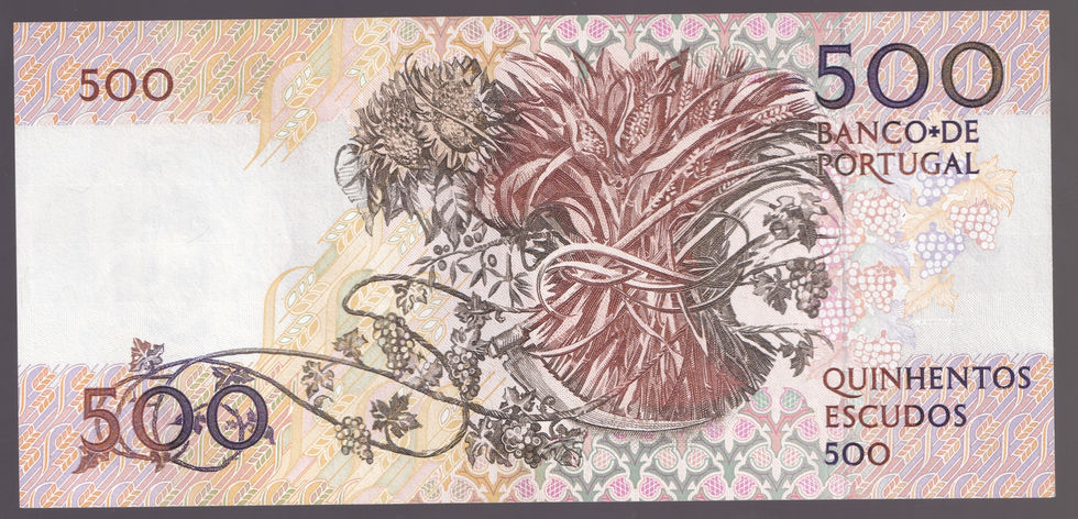 A almost Uncirculated Banknotes of Portugal with serials CBK081388 BQX053855, issued in 1989.